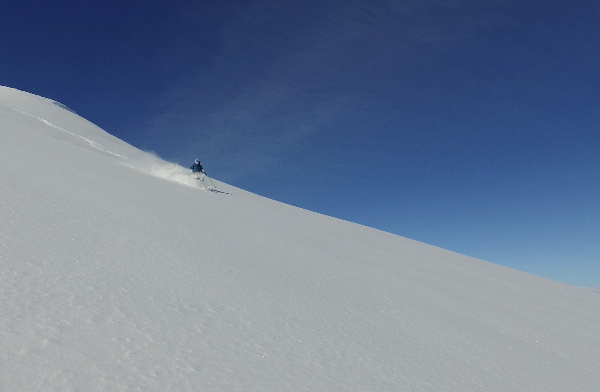 Bei den Skitourenwochen passe ich die Schwierigkeit der Abfahrten und Touren an die Ansprüche und das Können der Gruppe an. Ein sicherer Parallelschwung in unterschiedlichen Schneearten, flüssiges Skifahren in Gelände bis 35 Grad Steilheit sind aber auf alle Fälle Voraussetzung um die Touren auch wirklich genießen zu können.