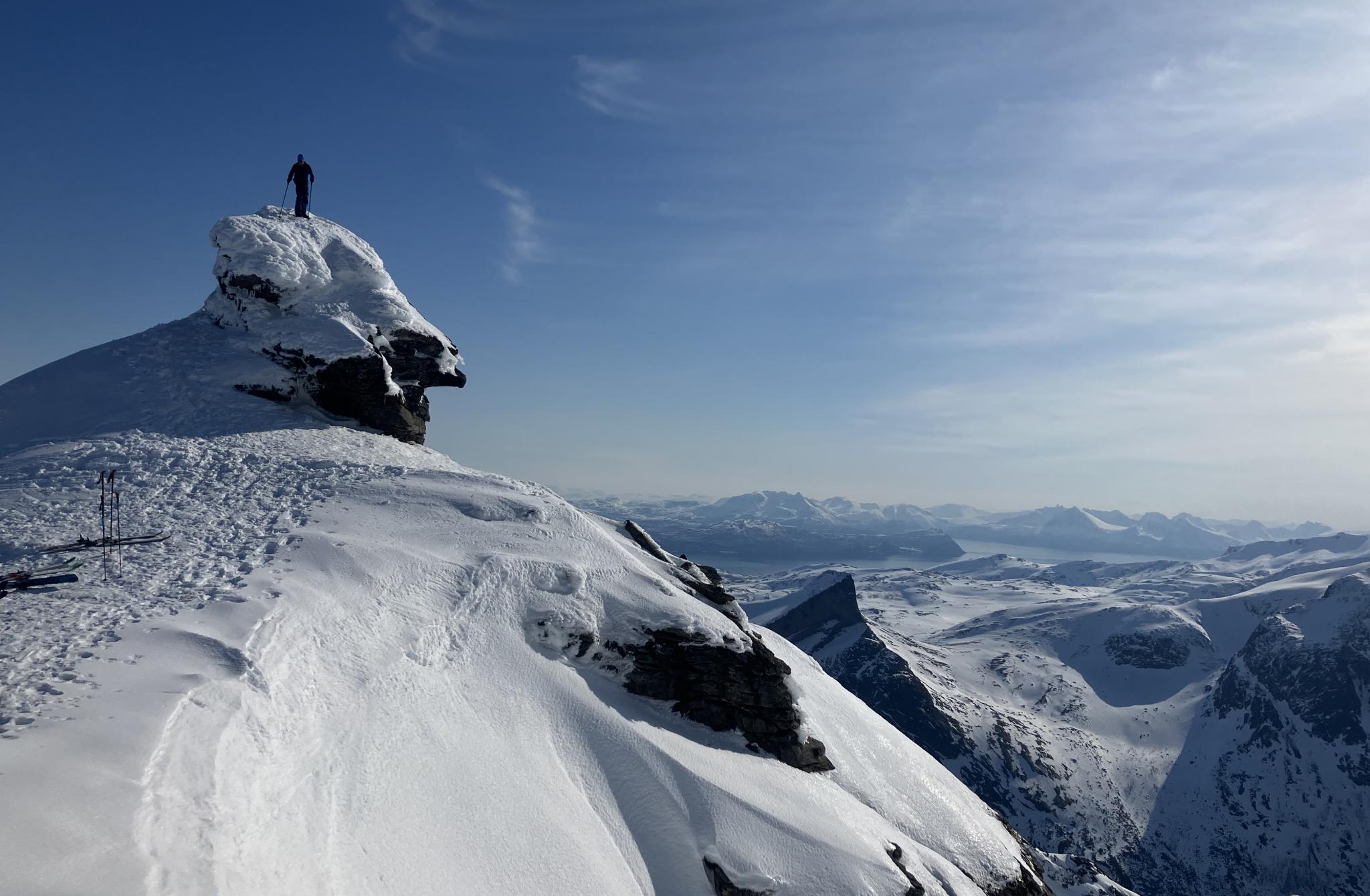 Genau in der Mitte liegt auch der landschaftliche Charakter dieser Skitourendestination: Die Bergformationen sind von höchst unterschiedlicher Natur und spiegeln die gesamte Vielfalt der arktischen Landschaft Norwegens wieder.